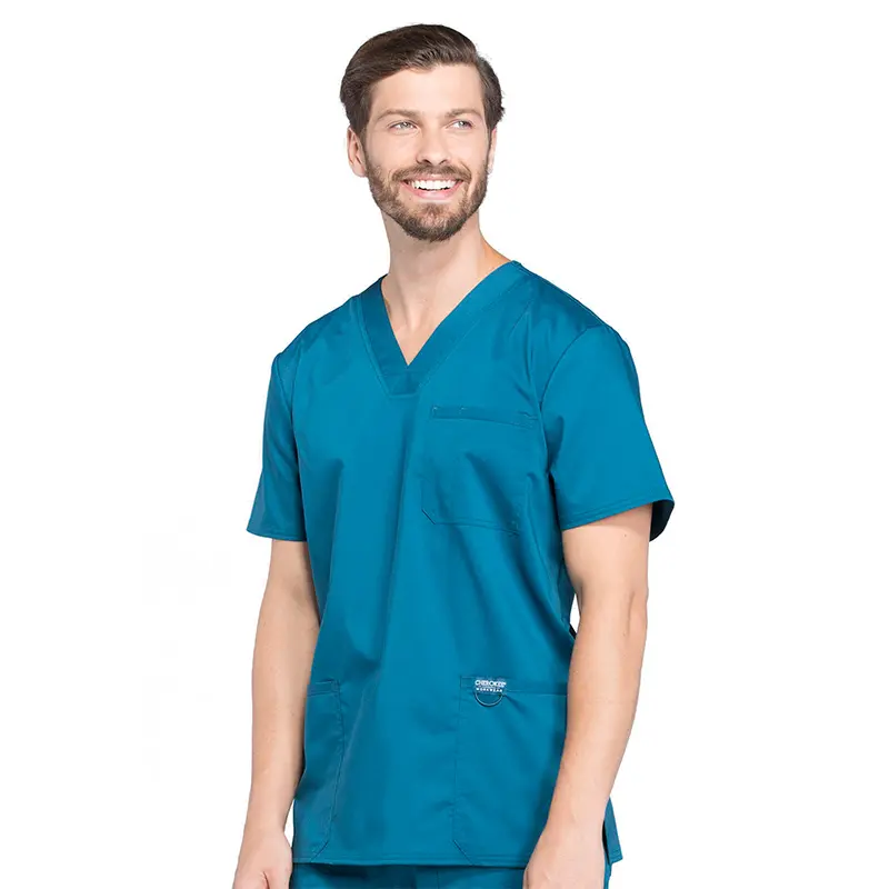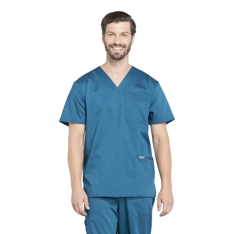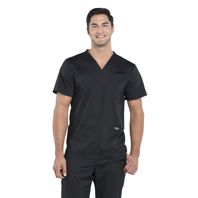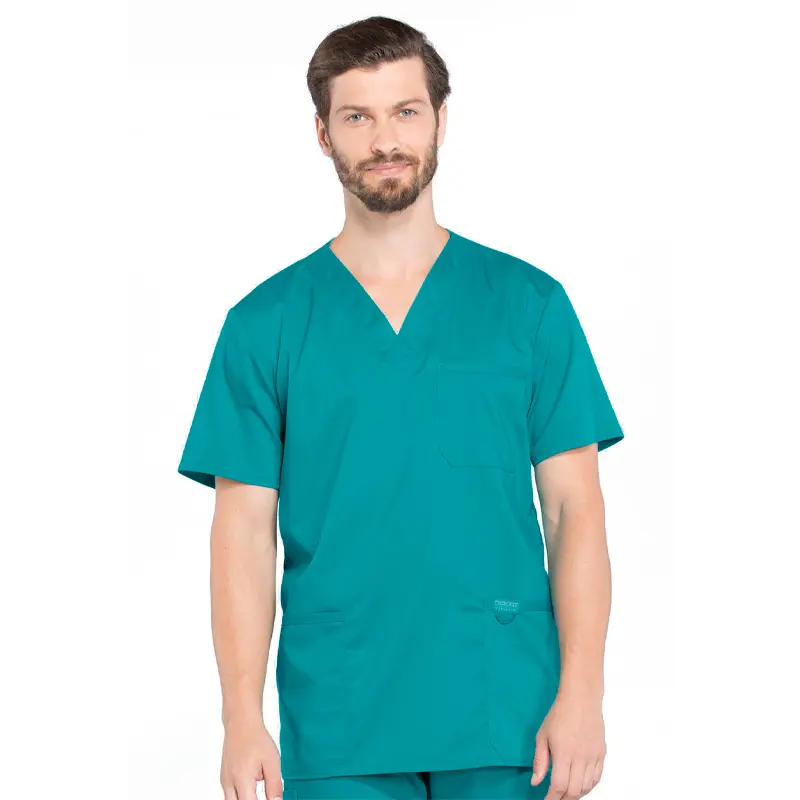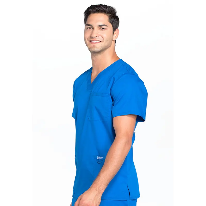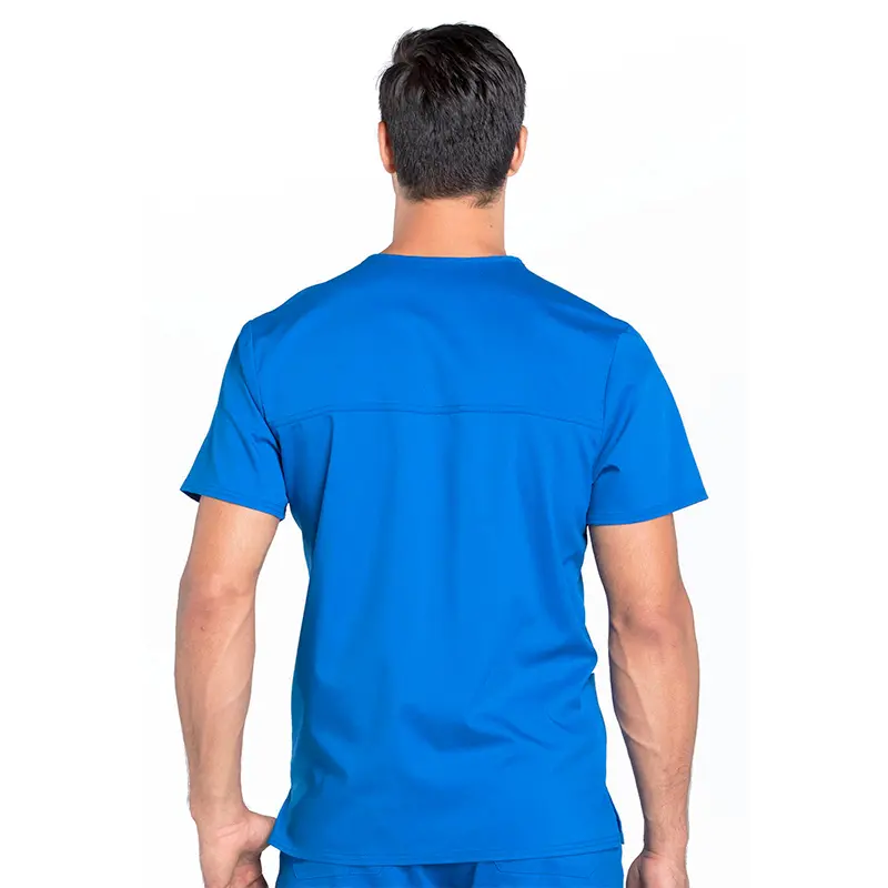 Su cuello en V aporta un calce cómodo, mientras que sus tres bolsillos —uno en el pecho con ranura para lápiz y dos delanteros— permiten mantener tus elementos esenciales siempre a mano. Incorpora además un lazo elástico para credencial en el bolsillo izquierdo y aberturas laterales que facilitan el movimiento durante el turno.